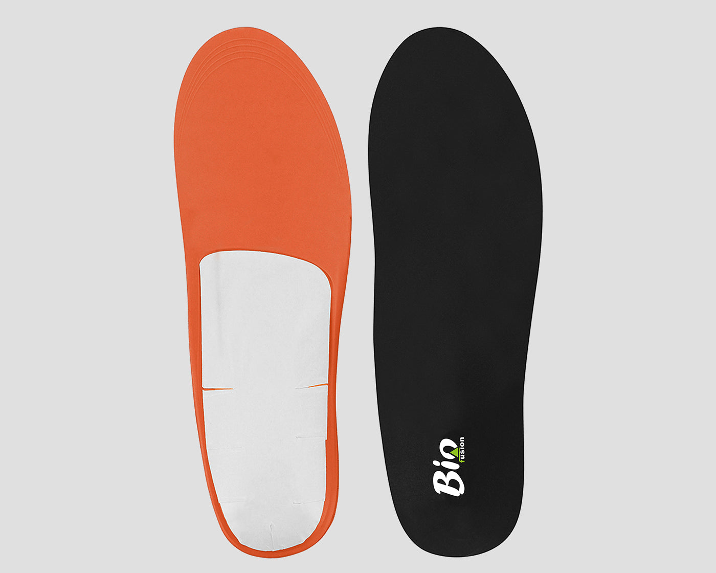 BIO-Fusion is an innovative biodegradable TPU insole featuring an integrated medial rearfoot post for enhanced stability, offering superior durability, flexibility, and biomechanical control while providing eco friendly, in-clinic customisation for optimal patient support.